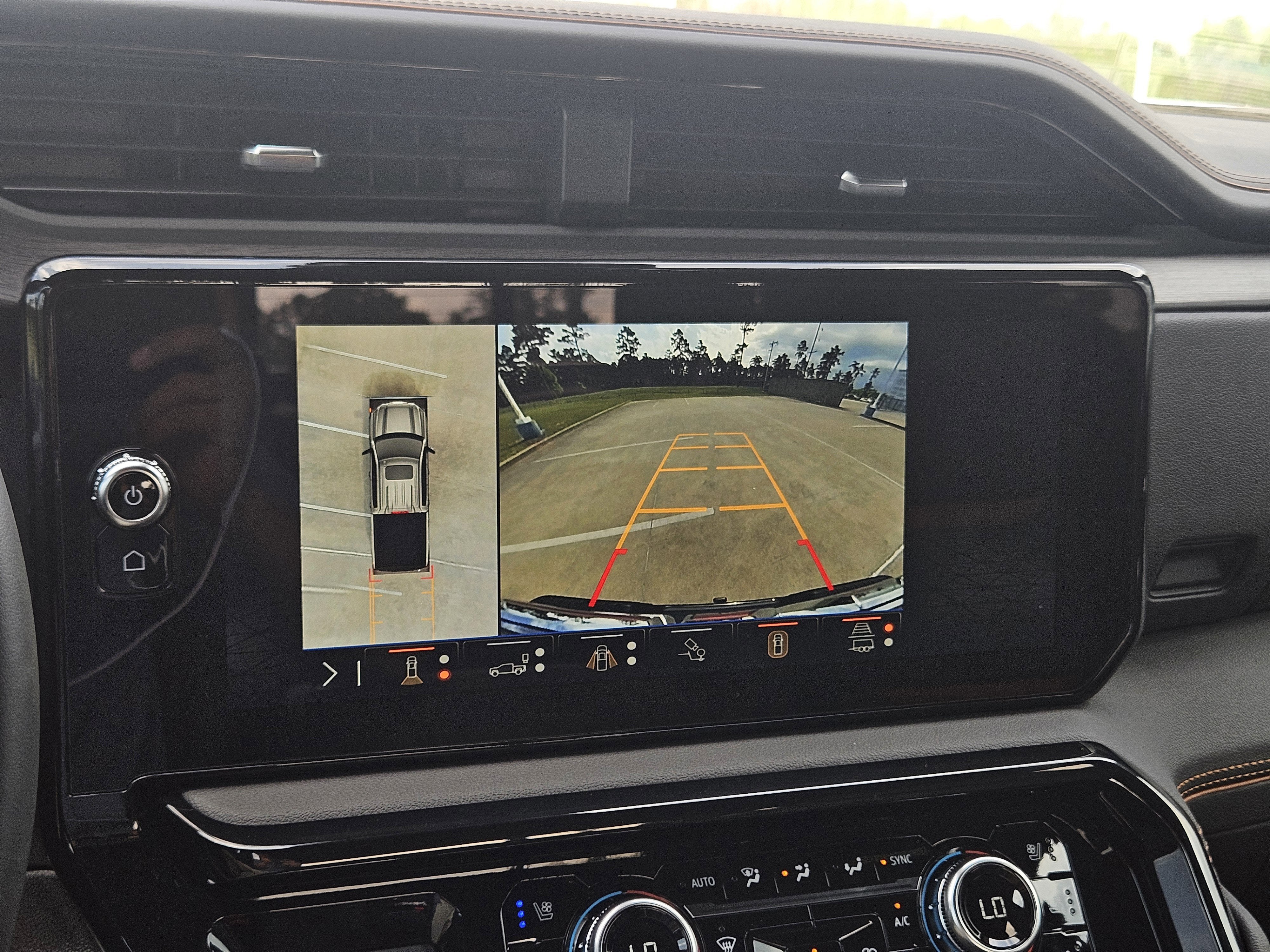- Allows driver to see inside the cargo bed on the infotainment display to help with 5th wheel or gooseneck hitching and to check cargo