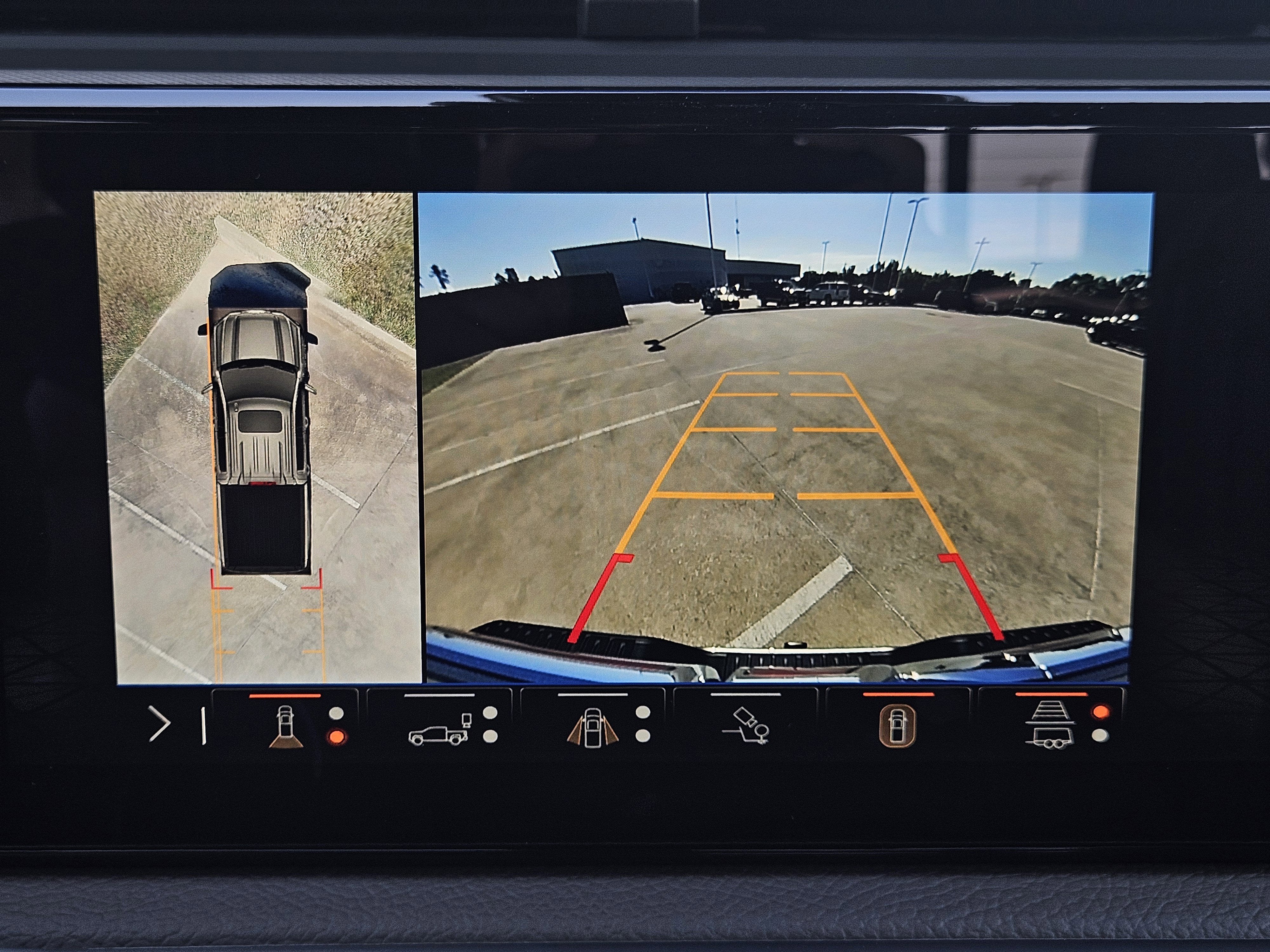 - Allows driver to see inside the cargo bed on the infotainment display to help with 5th wheel or gooseneck hitching and to check cargo